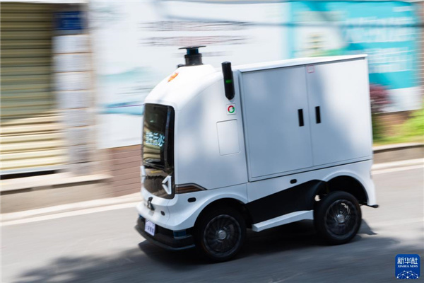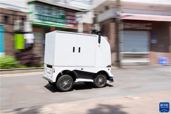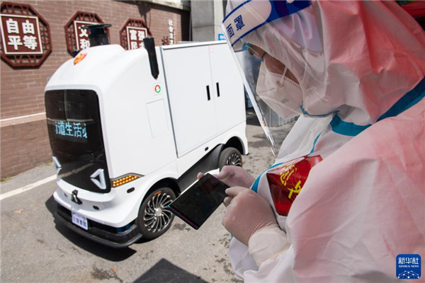 近日,为降低防疫一线工作人员接触感染风险,减轻人工配送压力,湖南省长沙市雨花区东塘街道在防疫封控区投入使用多台无人配送车,为封控区内的居民运送生活物资。