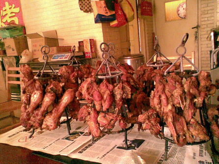 从哈萨克民族中传来的一种羊肉食用法,因用手抓吃,故得名。做法较简单,即先将带骨的羊肉剁成块,放入清水中煮熟,捞出后上面撒上洋葱末、盐、再浇点滚汤即成。这种肉味道清纯软嫩,油香不腻,既可吃肉,又可喝汤,是本地人招待来客的美食。特别用小羊肉煮出的,谓之“羊羔肉”,其美味则更具上乘。