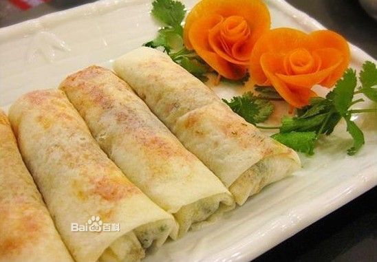 清代有诗人写诗咏薄饼:“春到人间一卷之”,描写薄饼皮是“薄本裁圆月,柔还卷细筒”,描写薄饼馅是“纷藏丝缕缕,馋嚼味融融”。薄饼还是厦门人的一大发明。明代嘉靖年间(1522——1566年),曾任潮州太守的同安人李春芳,将其女儿嫁给了金门蔡厝人蔡复一(那时,金门属于同安县管辖)。后来,蔡复一官至总督云贵湖广军务兼贵州巡抚,公务繁忙,日理万机,经常废寝忘食。蔡夫人看在眼里,疼在心上,害怕长此以往,有损夫婿健康。于是,她就将一些鱼、肉、虾、菜、笋、豆等用微火炖熟,用面皮包卷,置于夫婿案头,让他边吃边办公,一举两得。这种菜便被称为“婆饼”,厦门话“婆”“薄”同音,便又称为“薄饼”。它从官府传到民间,“夫人薄饼”又变成“美人薄饼”。