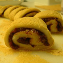 承德地区盛产黍米,承德叫黄米,性粘。“驴打滚”就是用黍米做成的一种大众化小吃,在承德已有200多年的历史。“驴打滚”是用黄米夹馅卷成的长卷,因卷下铺黄豆面,吃时将长卷滚上豆面,样子颇似驴儿打滚,因此得名。