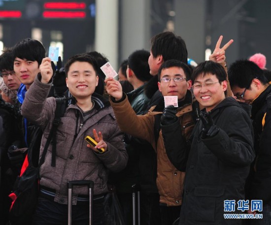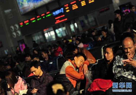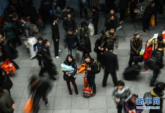 1月26日,在石家庄火车站,旅客们在等待上车。当日是2013年春运第一天。40天时间里,中国预计有34.07亿人次出行。旅客们的各类酸甜苦辣、悲伤欢喜都将记录在这场“春节大迁徙”中。新华社发(王晓摄)