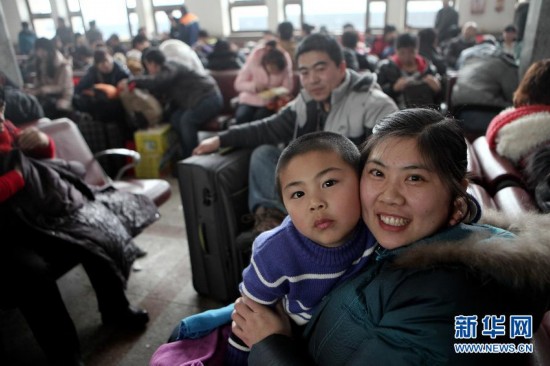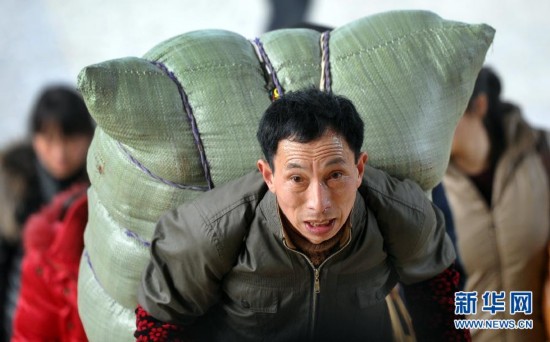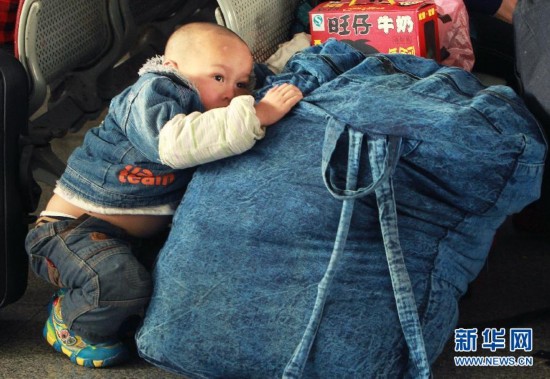 春运期间,踏上归途的一些孩子在旅途上帮助家人拿行李、照看行囊,他们稚嫩的身影成为一幅幅特别的春运图画。新华社发(许丛军摄)