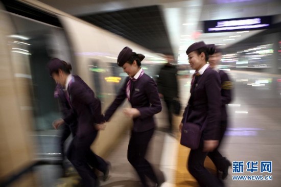 2月6日18点56分,在配合记者拍摄完合影后,肖晨和她的团队飞奔进车厢,为10分钟后开往蚌埠的临客做准备。当晚完成任务再次返回上海虹桥站,将是23点54分。从早上5点半左右起床,7点左右上车做准备到结束工作,一天里她们将站着为旅客服务总计15个小时左右。当天是春运第12天,京沪高铁上海铁路局迎来节前旅客出行高峰,预计当日该局发送旅客超过110万人。下午,记者跟随14点从北京开往上海的G3次列车,用镜头记录了春运期间京沪高铁以列车长肖晨为首的年轻乘务团队的工作状态。新华社记者金立旺 摄