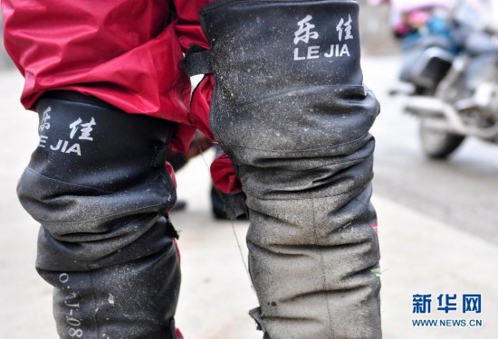 这是2月1日拍摄的返乡农民工沾满泥水的护膝。