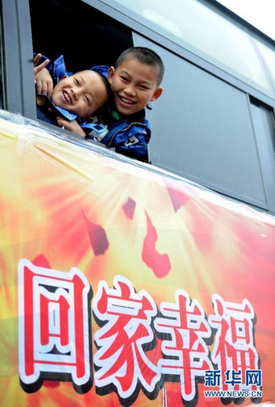 2月1日,在阜阳火车站停车场,两名农民工子女在乘坐免费大巴。当日,安徽省阜阳市在阜阳火车站启动“接您回家”活动。据悉,在2月1日至2月7日活动期间,阜阳市下辖县(市)各提供6台45座大巴车,在阜阳火车站临时停车场每天上午、下午各一个班次,免费接返乡人员回家过年。新华社记者刘军喜 摄
