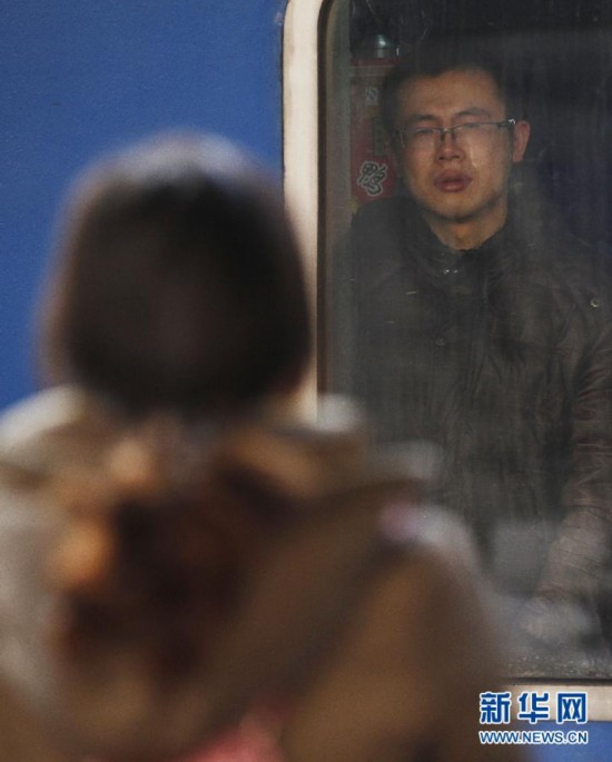 1月26日,在北京站始发的北京至哈尔滨的第一趟临客列车即将开车前,一对恋人隔着车窗依依不舍。不知从何时起,乡愁变成了一张张小小的车票,牵动着满怀思念的归人。春运中,总有一些温暖的瞬间,触动我们柔软的内心:亲人关爱的眼神、情人分别的泪水、孩子天真的笑容……它们,让寒冷的冬季变得温暖,给艰辛的旅程注入了美好。当团聚的心愿深深扎根于心底,当沉重的行囊背负着似箭的归心,回家的路,似乎不再漫长。新华社记者王申 摄