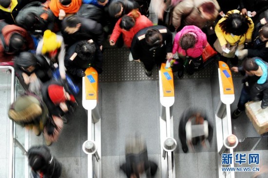 1月26日,旅客在沈阳北站候车大厅检票进站乘车。当日,为期40天的2013年春运正式启动。春运期间,全国旅客发送量预计将达到34.07亿人次。新华社发(杨新跃 摄)