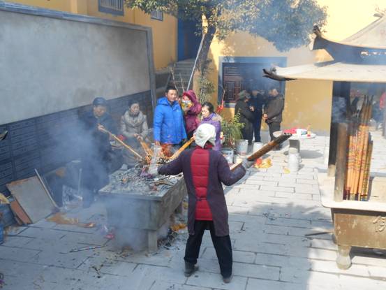 正月初一早晨,当地习俗是要去庙里拜拜。怀着对上天、对神灵的敬畏心情,替上一年还愿,为下一年祈福。