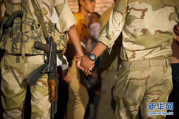 埃及国家电视台援引总统府声明说,埃及从8月14日下午4时(北京时间22时)开始进入紧急状态,为期一个月。这张7月26日拍摄的资料照片显示,士兵在埃及开罗解放广场维持秩序。新华社记者李木子摄