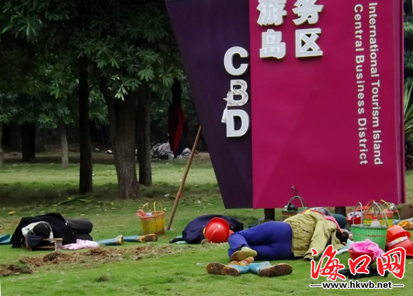近几日园林工人辛勤劳作,累了就在草坪上躺着休息,草坪又湿又凉,很多市民看了都很心酸,望相关部门能够提供工人们休息场所,为他们的工作带来便利。