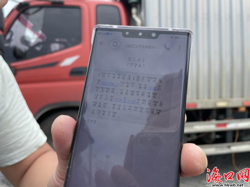 【司机点赞全预约过海模式:“节省了不少时间!”】27日12时,司机李先生在通过预约之后进入港口待渡。他告诉海口网记者,他购买了13时发班的船票,车上装有一车鱼,准备送往湛江。“没有预约之前都是到港口之后排队购票,提前预约之后直接称重买票即可进港待渡,以前要一个小时左右才能搞定的事,现在十几分钟就完事了,节省了不少时间!”(卢海浪)