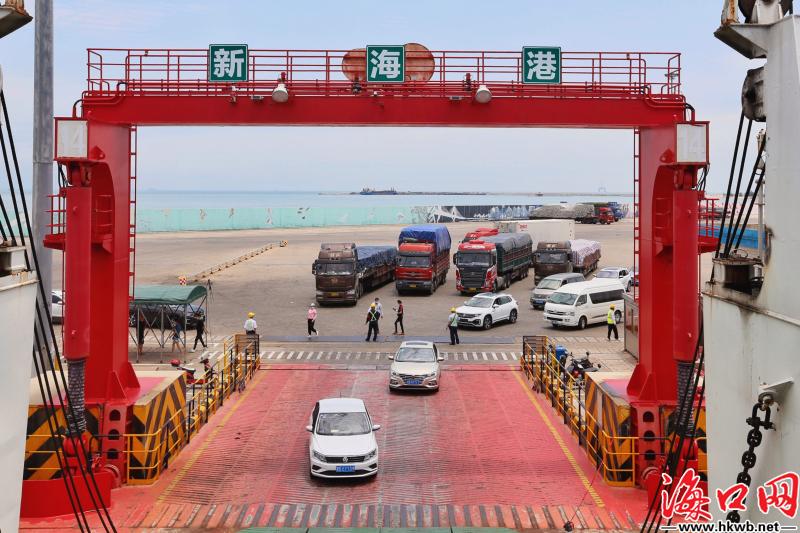【全预约过海首日 旅客车辆有序登船出海】4月27日,在海口新海港码头,司机通过预约购票进港后陆续登船过海。海南海峡航运有限公司新闻发言人谢焕杰介绍,通过全预约过海模式,司机和旅客可以根据自己的行程,合理安排出行的时间,从而改善目前尤其是重大节假日期间港口车辆、旅客集中到港,无序出岛的现象,提升过海司机和旅客的体验感。(卢海浪 邵阳)