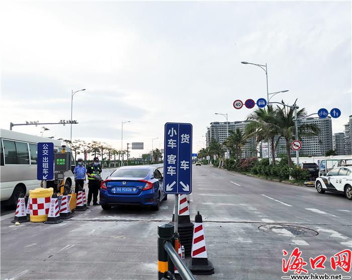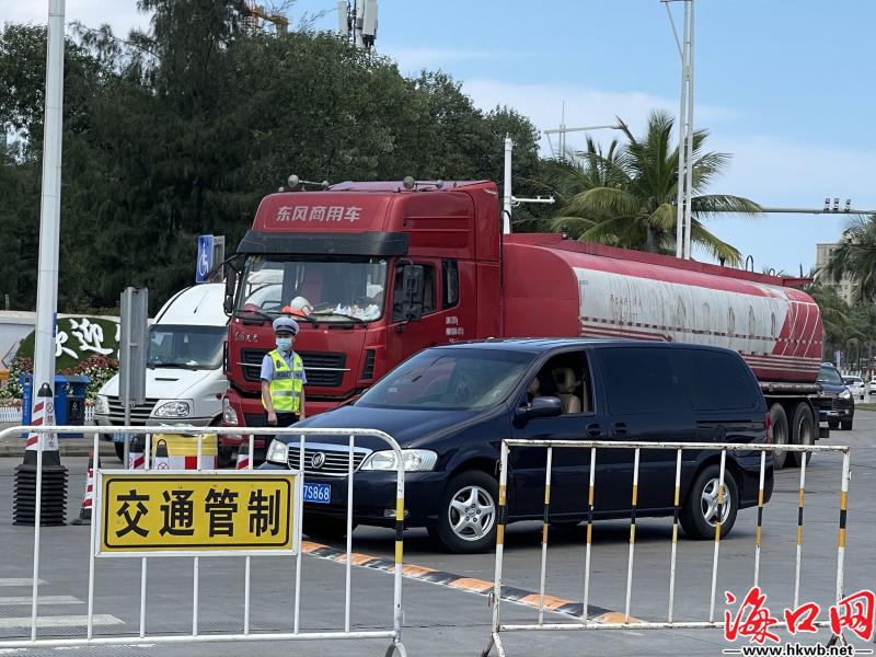 【新海港设置全预约过海咨询服务点 提供24小服务】27日,记者在滨海大道与新海港入港通道交叉口处看到,道路旁放置了“离岛车辆全预约过海”引导牌以及小车、客车、货车分流引导通道,新海港港口工作人员与交警一同进行分流指引,引导车辆有序进港待渡。此外,新海港还在港外停车场和港区内设有咨询服务点,24小时为过海旅客司机提供全预约过海相关的咨询指引服务,让广大司机旅客的过海行程更加舒心、顺畅。(记者卢海浪)