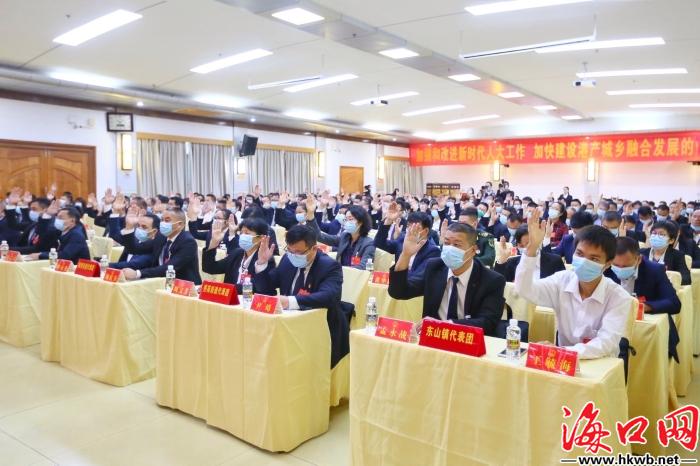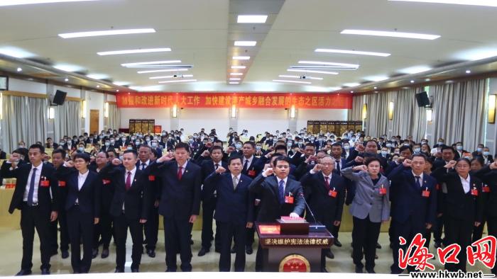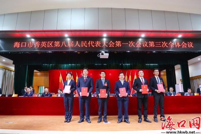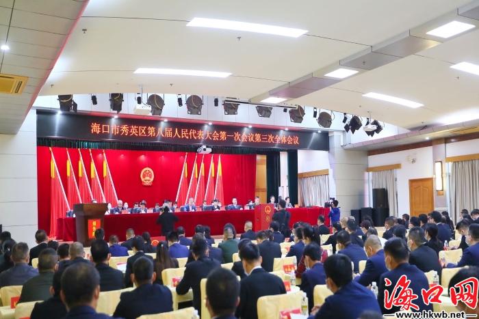 【海口市秀英区第八届人民代表大会第一次会议胜利闭幕】在圆满完成各项议程后,海口市秀英区第八届人民代表大会第一次会议胜利闭幕。(记者伍凤妹 邵阳)