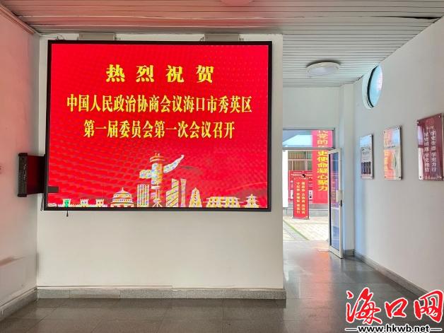 【中国人民政治协商会议海口市秀英区第一届委员会第一次会议将在7日下午开幕】奋力唱响同力同行主旋律,风雨同舟迈向秀英政协新征程,认真画好服务发展同心圆,凝心聚力谱写自贸时代新华章……中国人民政治协商会议海口市秀英区第一届委员会第一次会议将在7日下午开幕,会场现场悬挂着横幅,营造热烈的氛围。(记者伍凤妹)