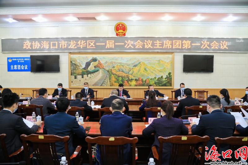【区政协一届一次会议主席团举行第一次会议】1月7日上午,中国人民政治协商会议海口市龙华区第一届委员会第一次会议主席团举行第一次会议。会议由区政协主席候选人吴馨主持。