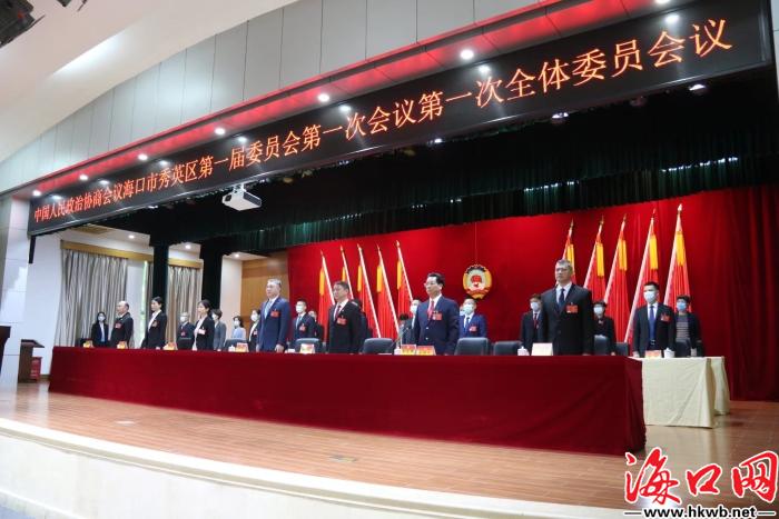 【政协海口市秀英区第一届委员会第一次会议开幕】7日下午,在雄壮的国歌声中,中国人民政治协商会议海口市秀英区第一届委员会第一次会议隆重开幕,会议听取政协海口市秀英区第一届委员会筹备工作报告。(记者伍凤妹 颜绵程)