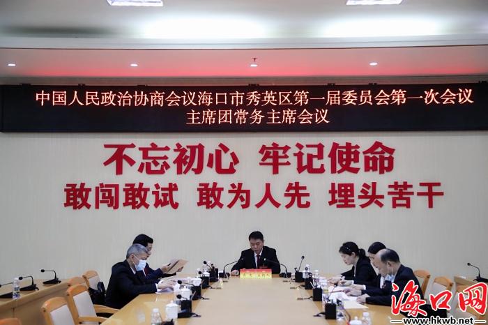 【秀英区政协一届一次会议召开主席团常务主席会议】7日下午,秀英区政协一届一次会议召开主席团常务主席会议,会议审议政协海口市秀英区第一届委员会第一次会议选举办法(草案);审议政协海口市秀英区第一届委员会第一次会议总监票人、监票人建议人选名单(草案);审议政协海口市秀英区第一届委员会主席、副主席、秘书长、常务委员候选人建议人选名单(草案);审议政协海口市秀英区第一届委员会筹备工作报告的决议(草案);审议政协海口市秀英区第一届委员会第一次会议政治决议(草案)。(记者伍凤妹 颜绵程 通讯员陈勤)