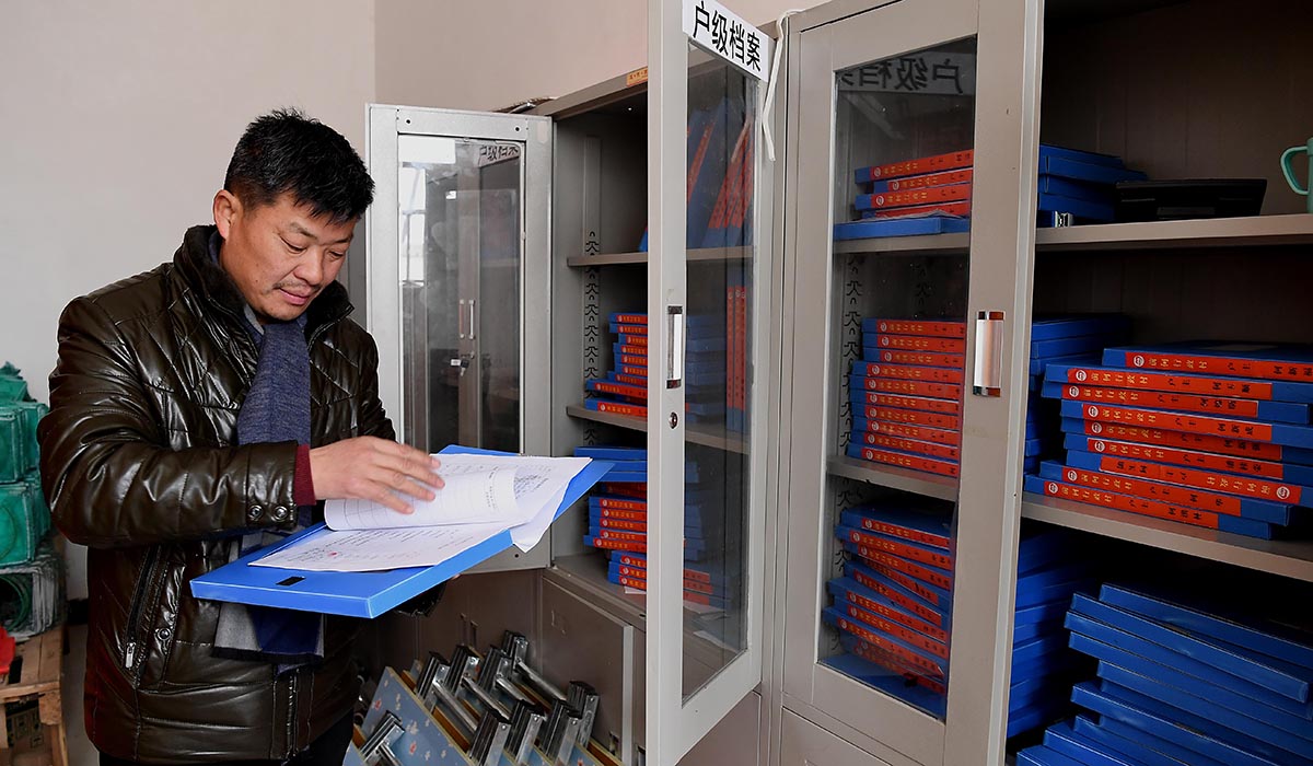 12月18日,记者在多文镇美山村委会办公室里见到了符港。当天办公室停电了,符港也没有闲着,而是忙着整理村民的纸质材料。