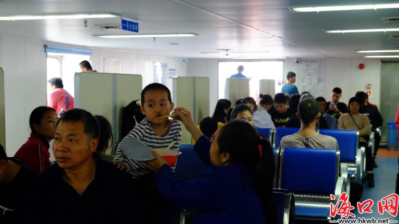 【回家的旅途更舒适了】“比以前好太多了。”当被问到回家的旅途相比以前有什么变化时,从上世纪90年代就在海南生活的湖北人李阿姨说道,“比如我们现在坐的渡轮,以前是又小又晃,坐一路下来很难受。现在的船是又宽敞又稳当,坐起来舒服很多,带小孩回老家也变得轻松很多。”(记者陈亮嘉)