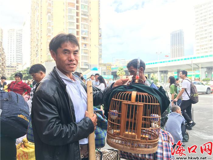 【春节返乡 带上“爱宠”过年】在海口汽车西站,一栋“别墅”引起海口网(微信号:haikouwang2013)记者的注意。这里面住着一只画眉,它的主人杨先生说,他在海南务工,画眉养了有一年多的时间,这次要带着“爱宠”一起回家过年。(记者伍凤妹)