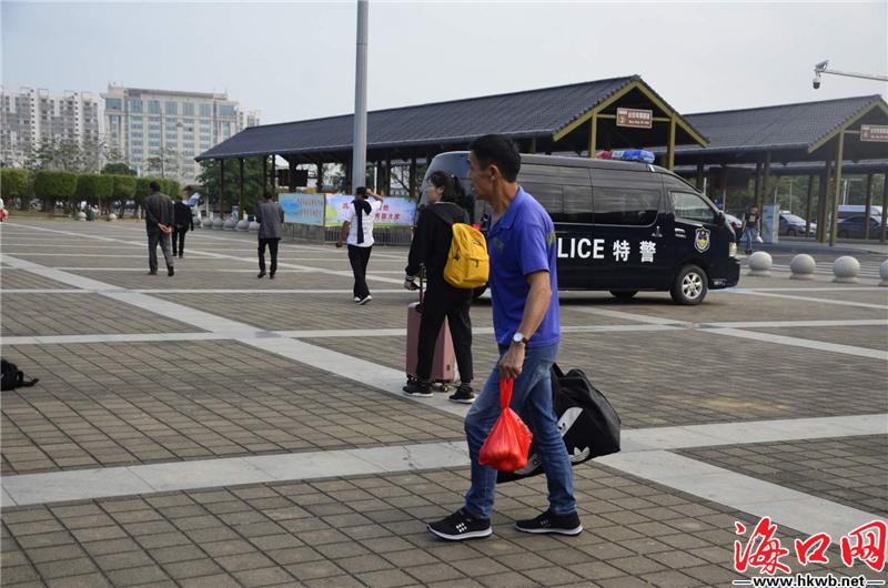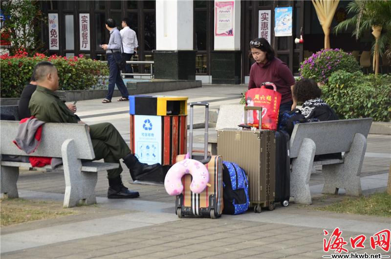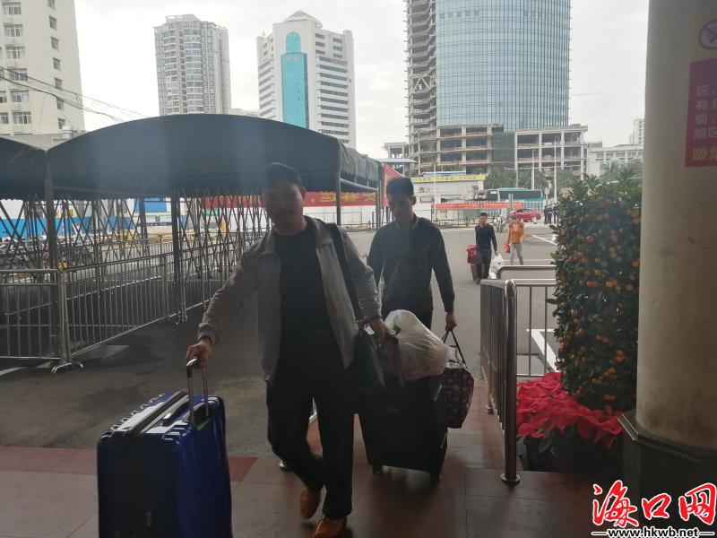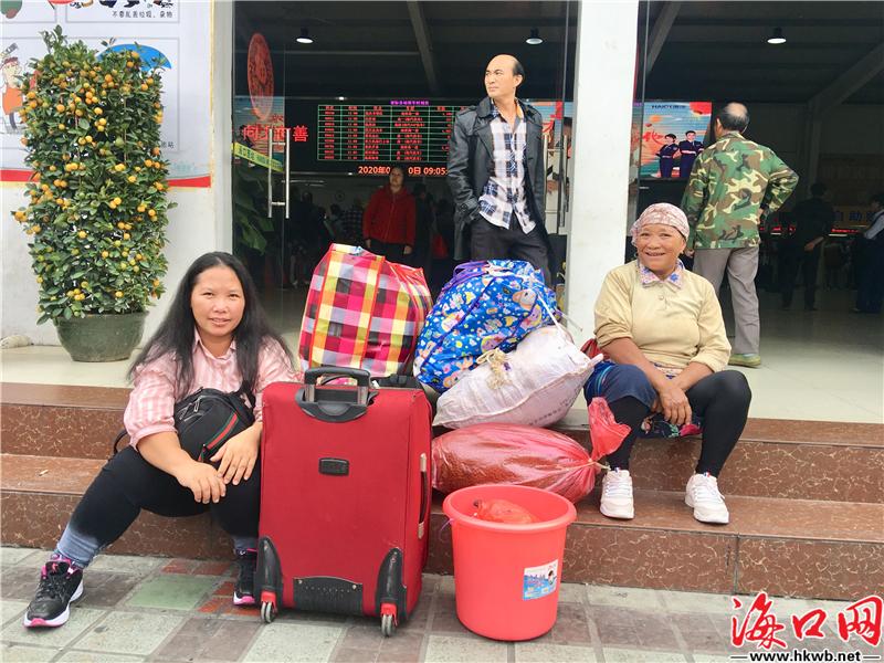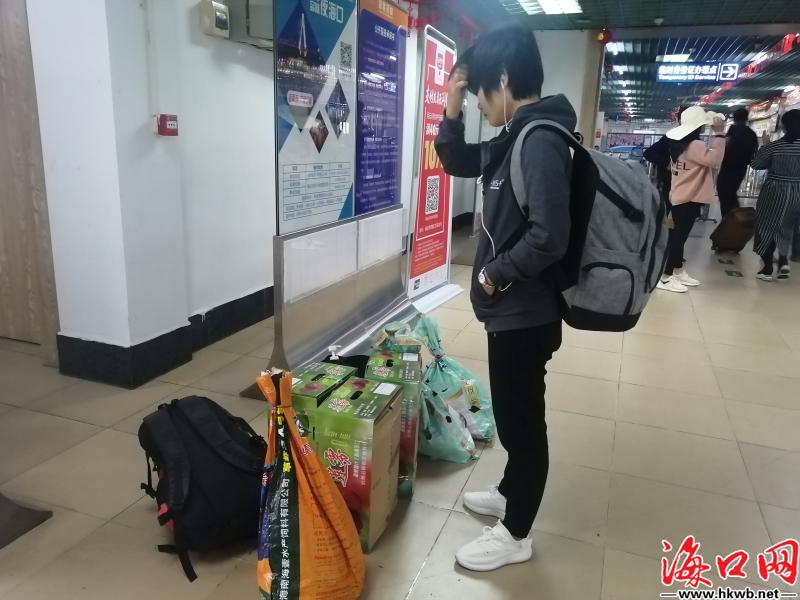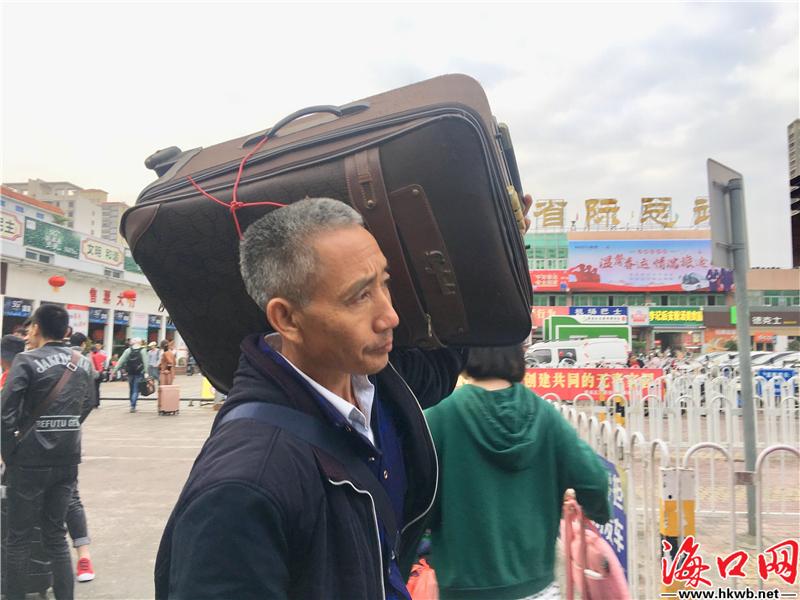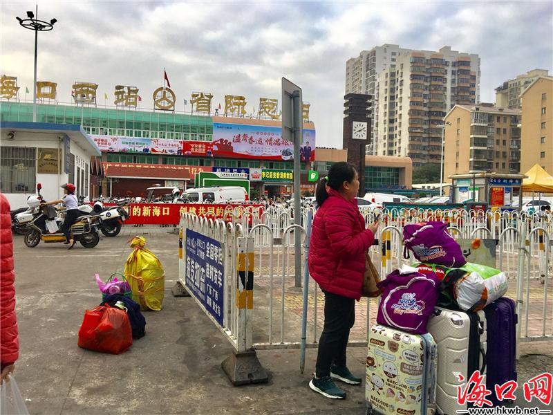 【大小包裹 把爱带回家】在海口汽车西站,旅客大包小包,把爱带回家。(记者伍凤妹)