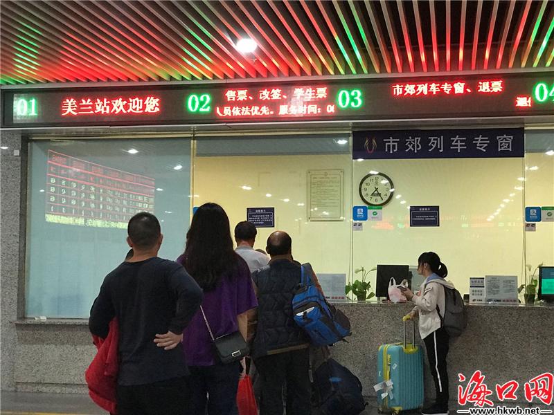 【市域列车成返乡队伍新宠】10日9时40分许,海口网记者看到返乡队伍在海口美兰国际机场高铁站购票窗口排队购票,“想试试市域列车,我们几人都是回市区的。”几名放假返乡的大学生称。不少返乡人冲着购票方便、速度快的优点,也选择了市域列车。在高铁站墙上,温馨张贴有列车的时刻表和购票二维码,供乘客参照使用。(记者吴安宜)