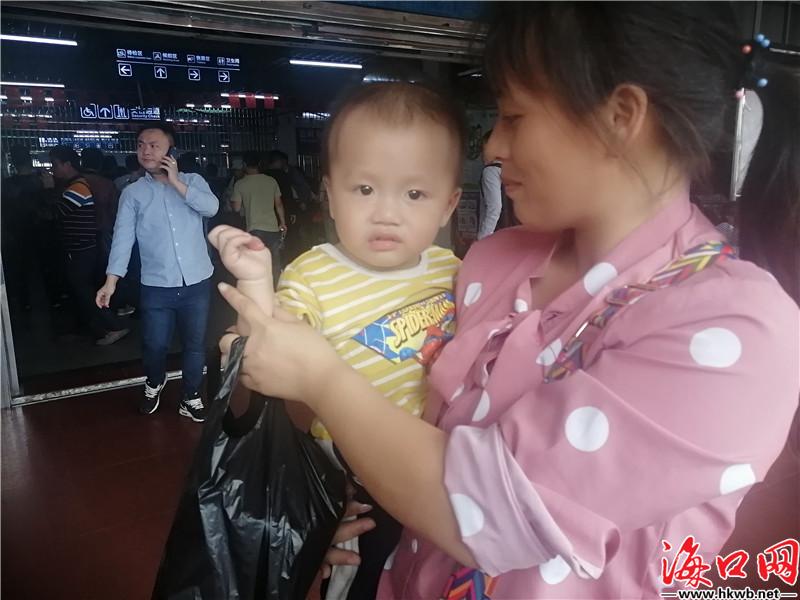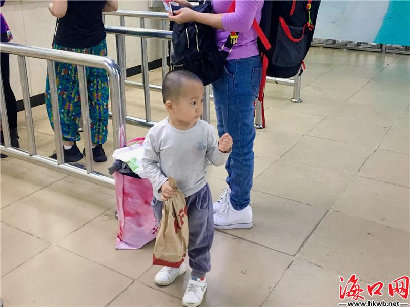 【春运中的“萌宝宝”】1月10日,在海口秀英港,“萌宝宝”们也跟着家人踏上返乡的旅途,成了春运大潮中一道“可爱”的风景。(记者李佳佳 见习记者朱晓欣)