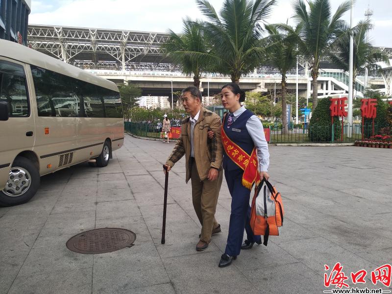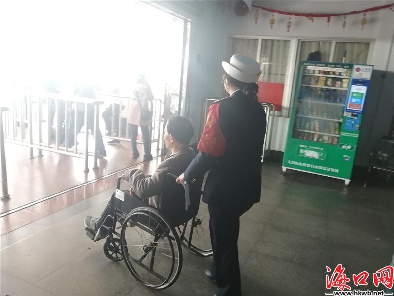 【暖心春运!海口汽车客运总站工作人员搀扶年迈旅客进站候车】1月10日,2020年春运大幕正式拉开。在海口汽车客运总站,一位年迈的旅客拄着拐杖,还拿着行李,行动十分不便,工作人员见状,立即上前帮忙提行李,并搀扶该旅客进站候车。(记者刘杰)