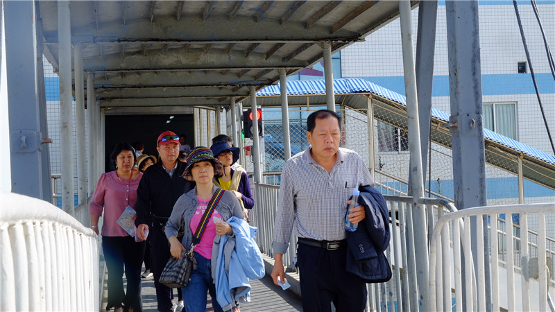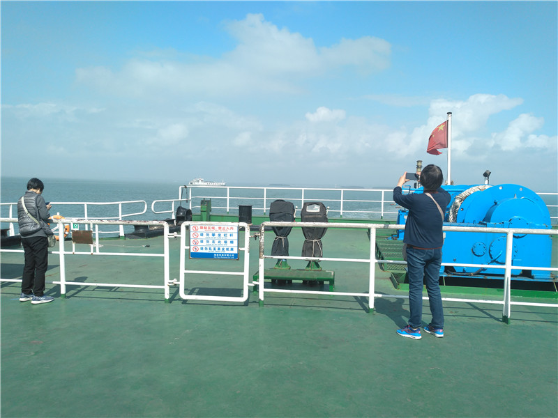 【登上甲板享受海上春运的别样风趣】检票登船后,不少乘客迫不及待地走上甲板,晒太阳拍美照,不亦乐乎。(见习记者朱晓欣)