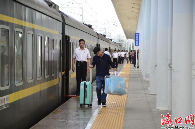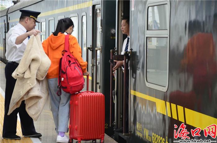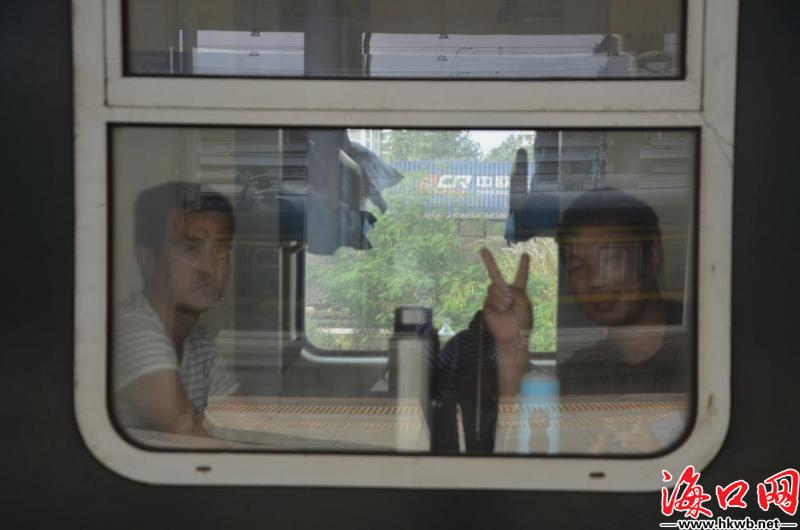 【上车,我们要回家啦!】10日10时35分,从海口开往长春的Z386列车缓缓驶动,载着一群思乡人回家。(记者卢海浪)