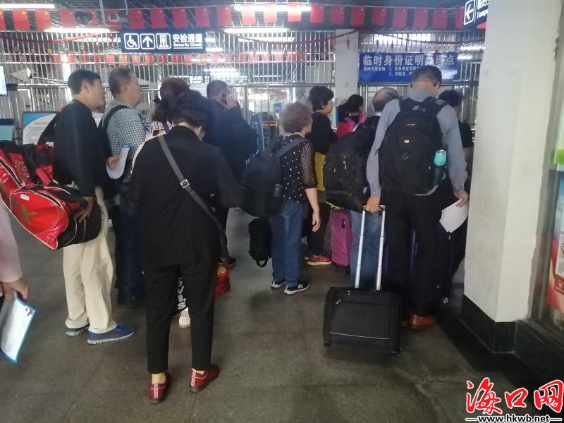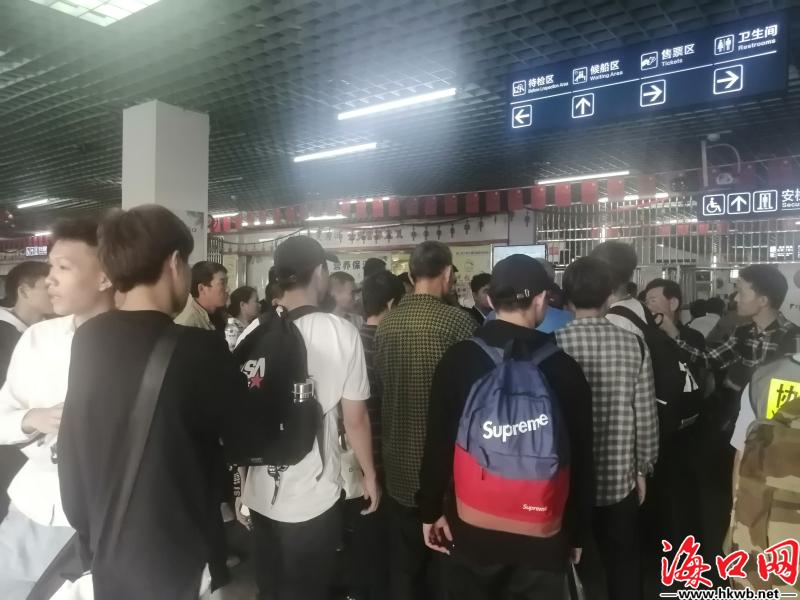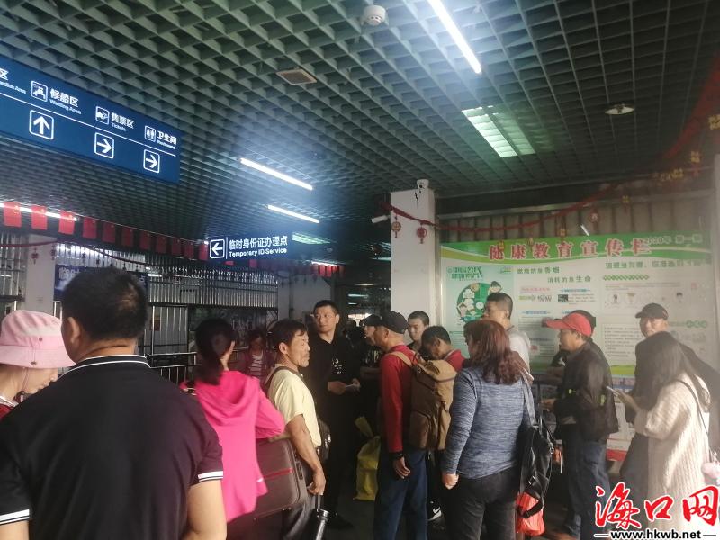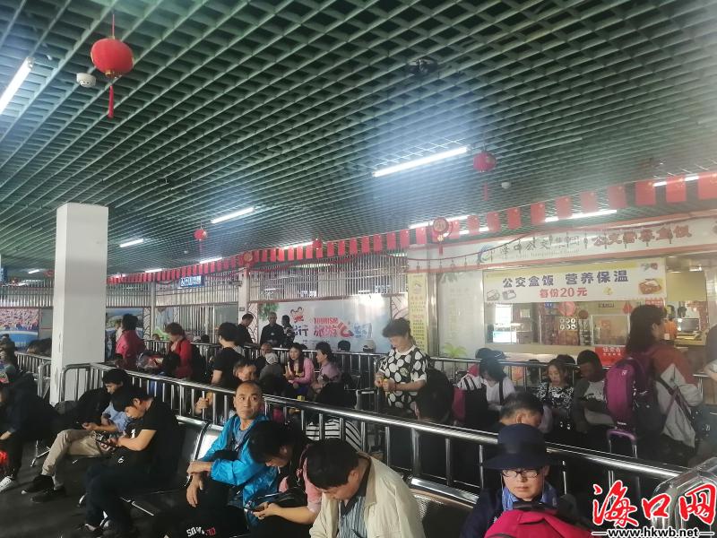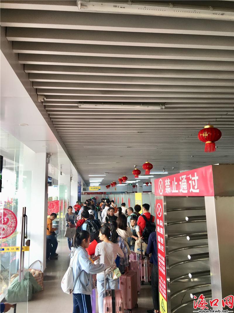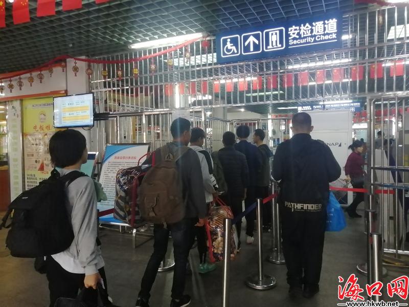 【海口汽车西站返乡客流增多】10日,临近12时,记者看到,海口汽车西站返乡客流增多,旅客排长队等待安检。(记者伍凤妹)