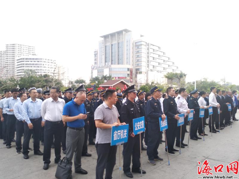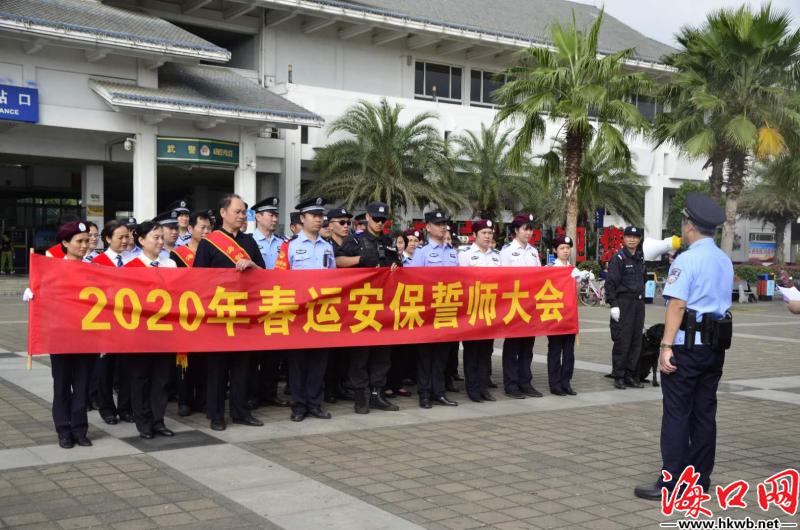 【春运,我们有信心!】10日上午,在海口火车站广场前,海口铁路公安及火车站工作人员开展2020年春运安保誓师大会,“春运,我们有信心!”(记者卢海浪)