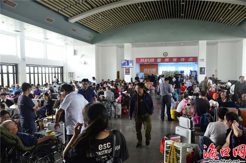 【秀英港客流量逐渐增多】10日11时许,前来秀英港购买车票及候船的旅客逐渐增多。在候车室,大大小小的行李箱倚靠在椅子旁,椅子上坐满了等候的乘客;检票口前,同样也排着长长的队伍,等待上船。(记者李佳佳)