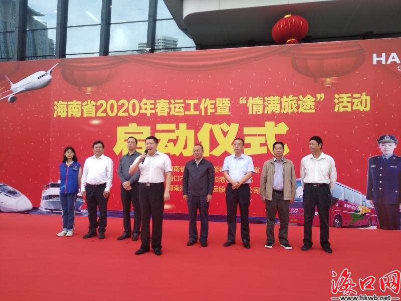【海口各部门全力保障旅客们的安全回家路】1月10日上午,海南省2020年春运工作暨“情满旅途”活动启动仪式在海口汽车客运总站举行,预示着海南2020年春运工作正式启动,各部门将全力保障旅客们的安全回家路。(记者刘杰)
