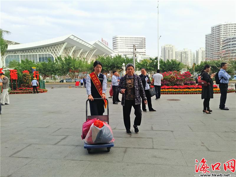【拎不动,我帮您!爱心小推车把“载爱回乡”】“阿婆,我来帮您吧!”春运首日,在海口汽车客运总站广场,一支由数名站务员组成的爱心小推车队伍“上线”。站务员黄贵明介绍,爱心小推车服务对象是拎着大量行李的老人、小孩、孕妇、残疾人以及农民工等,为有需求的旅客把行李从车站广场运送到候车大厅,减轻旅客提行李的负担。爱心小推车每天7时30分至17时30分提供服务,并根据客流情况适当延长。(记者黄晖)