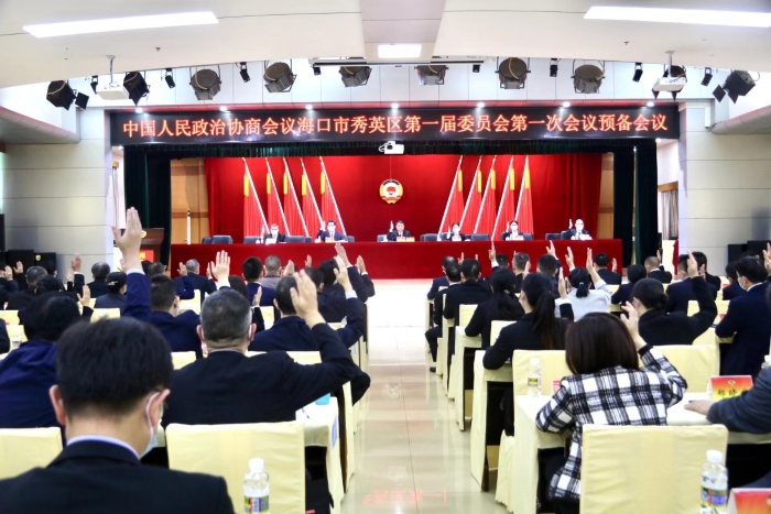 7日下午,秀英区政协一届一次会议主席团第一次会议召开,会议通过举手表决的方式,审议通过政协海口市秀英区第一届委员会第一次会议主席团常务主席和主席团常务主席会议主持人名单。