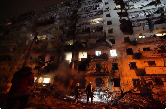 乌克兰紧急情况部门发布基辅市南部城区建筑物受损图片