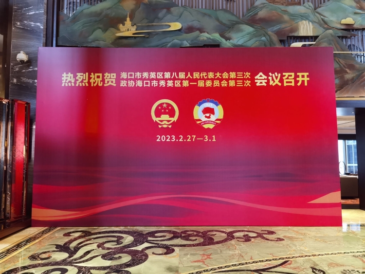 【政协海口市秀英区第一届委员会第三次会议开幕在即,氛围浓厚热烈】中国人民政治协商会议海口市秀英区第一届委员会第三次会议于2月27日至3月1召开。宽敞明亮的会议大厅、醒目的红色展板、振奋人心的标语、催人奋进的宣传海报将会议现场装扮得庄严、简朴,展现良好会风,营造浓厚氛围。