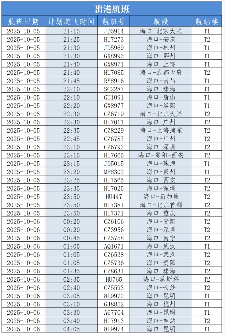 受今年第21号台风“麦德姆”影响,为保障广大旅客安全出行,预计10月4日23时起,各航空公司在海口美兰国际机场执飞的进出港航班拟全部取消,恢复运行时间将根据台风动态和影响情况而定。请各位旅客关注航空公司官方通知或及时联系航空公司获取航班最新动态信息,合理安排出行计划。