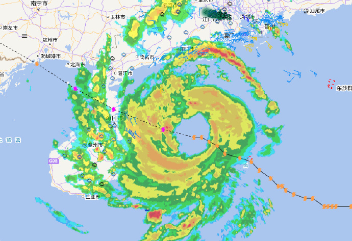 4日夜间—5日,海南岛北半部地区有暴雨到大暴雨、局地特大暴雨,南半部地区有大到暴雨、局地大暴雨。海口陆地风力12~14级,预计,4日20时—6日08时海口累积雨量00~300毫米、局地400毫米。